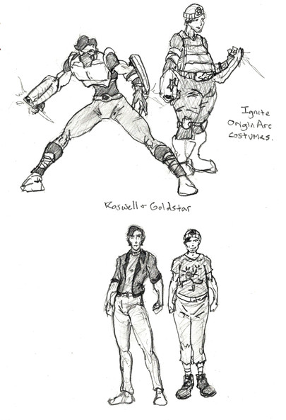 A picture I made for possible characters to be used in Artists at the Ready. The guy on the left is Nicholas Wallace, the artist. The man on the right is called Caiman, and the lady on the left is Sally Ride, aka "Hellbender". I'm still considering others for the final member of the OC team.Related content