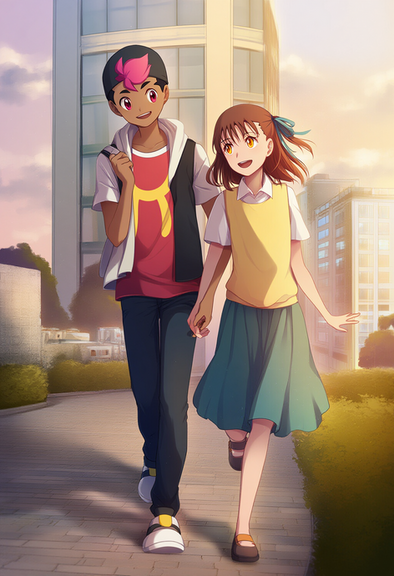 #anime #digitalart #fanart #animegirl #animedrawing #characterdesign #photography #digitalpainting #animestyle #highfive #softlight #streetscene