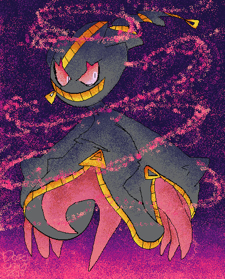 Ish' a spookeh Banette from the Pokehmans. A mega Banette to be exact~ Not to proud of this? More of a "detailed scribble" you could say but eH.Hey look, it's way too dark. HEY ME! go draw with some bright happy colours you heck.