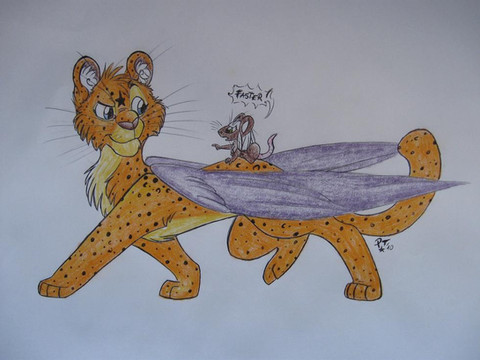 For here is my half of the art trade. I might have made Anga a little big but I think it works. Plus, I gave Ricky a T-shirt and pants but I'm not sure what color to use. For the overall drawing, I thought I'd make it in B&W.Anga © Disney
