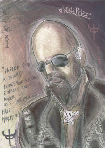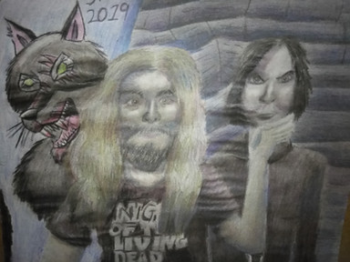 This is a drawing I "concocted" on my own.The drawing of "Meat" himself I coppied from the front cover of a rare British promo record I bought on Ebay sometime ago.The rest (on the left) I put together myself. I admit I got the idea from the cover of a box set with Meat Loaf's first three albums; Bat out of hell,Dead Ringer and Midnight at the Lost and Found. Sorry about the sloppy job on the lettering but it looked okay before I started to color it in,happens all the time.Related content