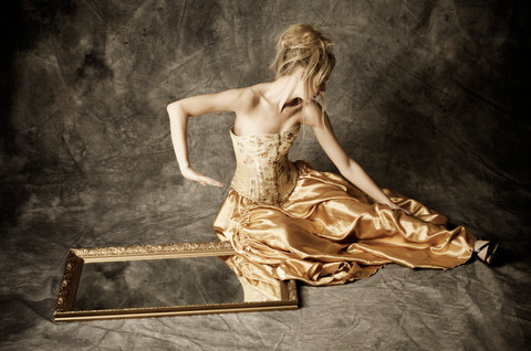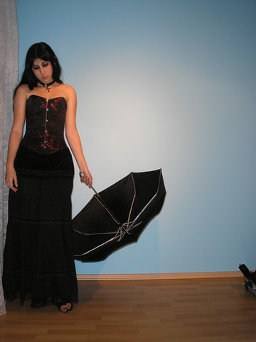 And now about the corset. Ugh... We have the typical Cenestelle vs. the World love-hate relationship. It's my first steel-boned corset, and it feels so different from the rest of them. It actually feels a little like armor, virtually half of the surface visible in the photo is reinforced with 1/2'' steel bones and that's a LOT of metal in a piece of clothing. BUT it's a bit too small, and while it's OK on my waist, it threatens to break my ribs cos I have a large ribcage by general standards. So finally, a corset that actually hurts. I can easily imagine fainting in this thing, so I haven't yet had the courage to wear it outside. Next time I'm either buying a larger size and lacing it up to the max [as I end up doing all the time], or removing ribs from the top of my ribcage, if that's even possible. Kinda makes you think whether there's a masochistic side to willingly wearing a garment that doesn't let you breathe and actually hurts. This is me leaking one of my biggest secrets btw. Sorry for the overflow of technicalities, but in my defense, I could actually go on.