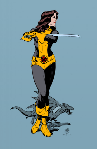 The original is a B&W titled Kitty Pryde Lockheed sketch by .I just added the color to it and re-titled it Kitty Pryde Lockheed colab .