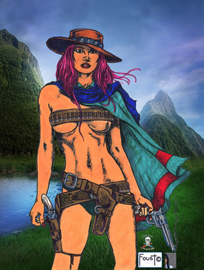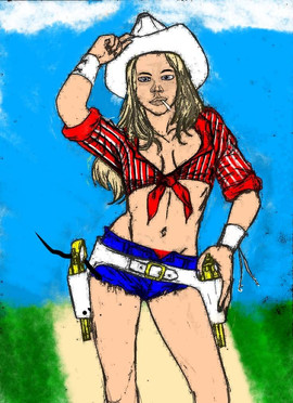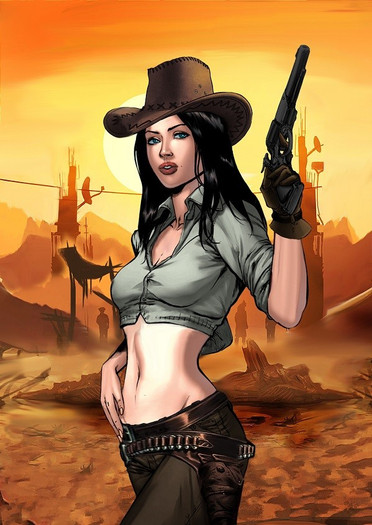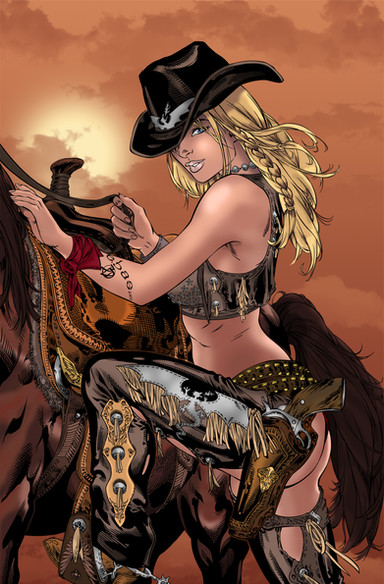 The original is a B&W titled Ride 'Em Inks :thumb270791835: by (on inks) and (on pencils) :thumb268251841: .The background art is titled SKRATCH Speed Painting :thumb139313867: by .