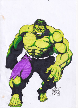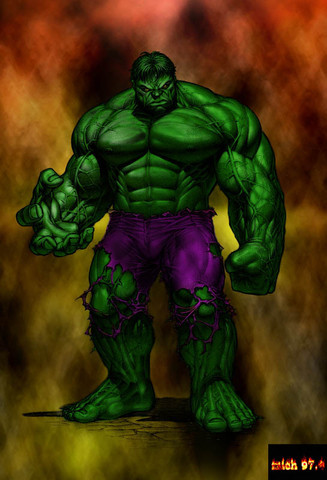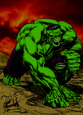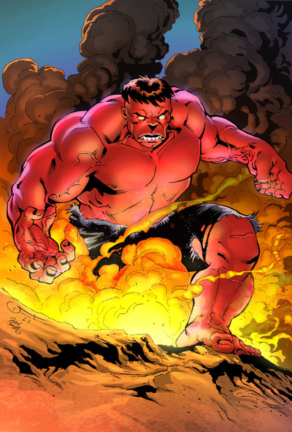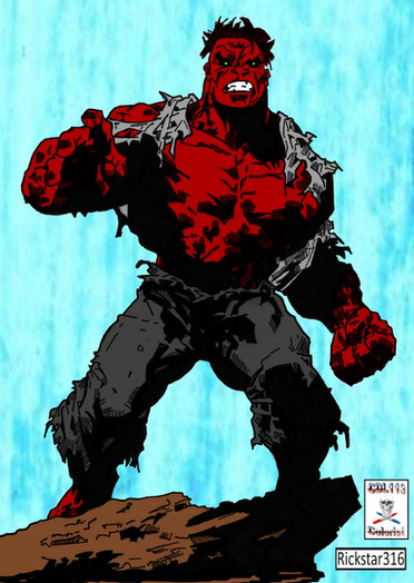 The original is a B&W titled [link] by . I colored it in by hand as the Red Hulk aka Rulk. Then I used Paint.NET to add a bit of glow to the pic.Related content
