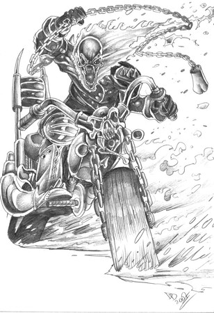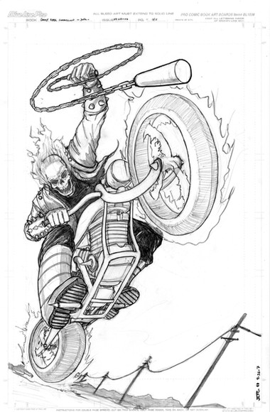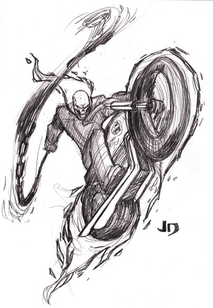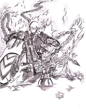 New Ghost Rider commission sketch. Don't think I've drawn Ghost Rider on his bike before so this was kinda challenging in a fun way. I went with a mix of Johnny Blaze's & Danny Ketch's styles for Ghost Rider's design. And I mashed up Danny Ketch's 90s comic-style bike with the bike from the first Ghost Rider movie (along with some real life chopper reference). Again, fun stuff lol. What do you guys think?And who's your favorite Ghost Rider, design-wise? Kinda digging Cosmic Ghost Rider right now myself, but I'll always love Danny Ketch's design with the black bike the most .