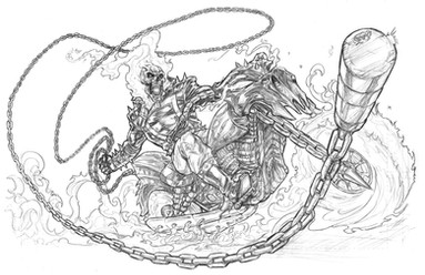 Ghost Rider inks done by my good buddy . Don’t know about y’all, but... I quite like it, lol. This year’s pinup possibilities, man... colors should be sick on this 😉Pencils by me