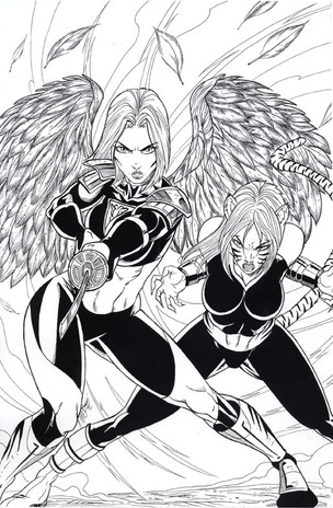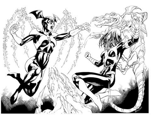 Here's the inks to 's commission of his OCs, Mayday & Luna. Inks done, once again, by my good buddyPencils here: