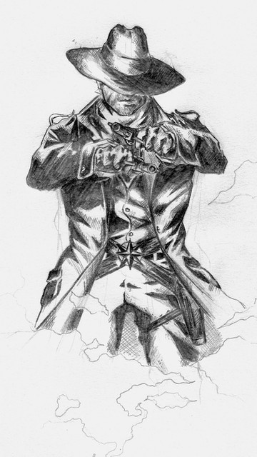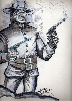 #beard #commissionedart #cowboy #guns #gunslinger #gunsmoke #oc #pistols #poncho #sixshooter #sketch #spurs #western #cdubbart #ontothenextone #indiecomicartist #cdubbified #sladehunter