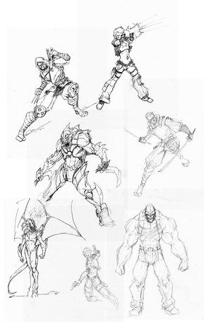 I did this at like 4am this morning. I was toiling on other projects and was reading an old X-Factor comic for a quick sec. A couple doodles later, I ended up ruffing out the whole team.It was a nice diversion, didn't last long enough, though.