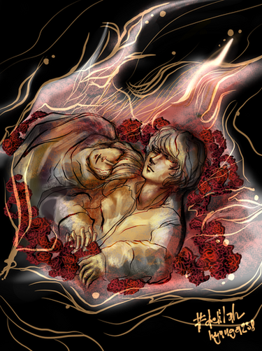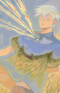 Augh, God he's pretty! I really like his expression in the closeup, and the sunset integrated into the color scheme... Everything just looks so natural.
