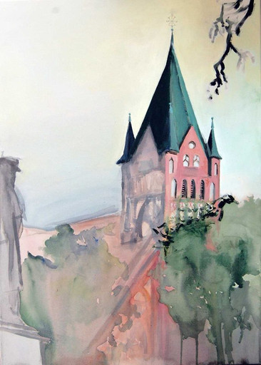 Dzięki! To fragment podupadłego budynku, częściowo pozarastanego przez drzewa. Malowane w plenerze, pod Łodzią
