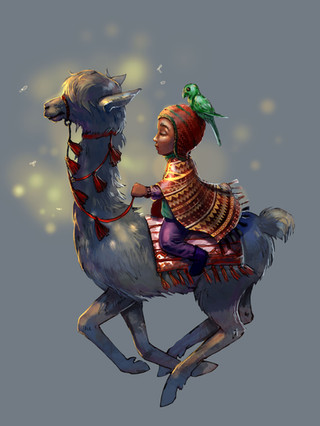 Just a little girl riding a cute llama.Dawn in procreate on ipad