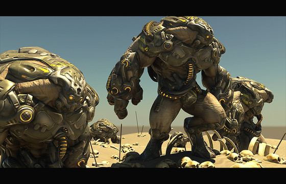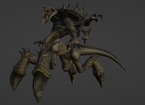 I feel like you could improve this work into a finished product by drawing more attention to the way that one of the spears has penetrated the beast's side. It seems like the most interesting element, and it could be the focal point of a dedicated deviation. The place that the weapon intersects the creature's body doesn't seem so refined as it isβit's like the two major models just clip into each other, instead of at an obvious wound.Β
