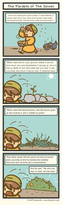 This one is more serious than my usual webcomics. My faith is a big part of who I am so I thought Iβd experiment a bit with trying to present a Christian message in a way that is (hopefully) thoughtful, respectful, and non-pushy, yet still fun to read. I might lay a big goose egg but at least I wanted to try.