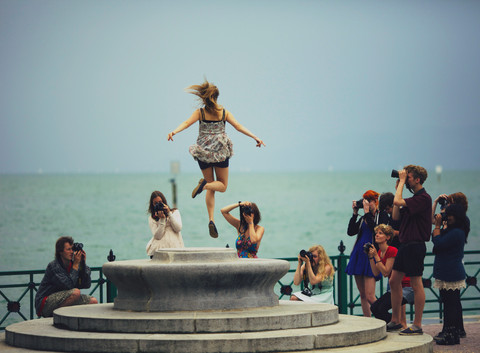 I love the scene, where the girl was very determined to keep running (or run away from the saltwater?) and others were like frozen Great catch ^^