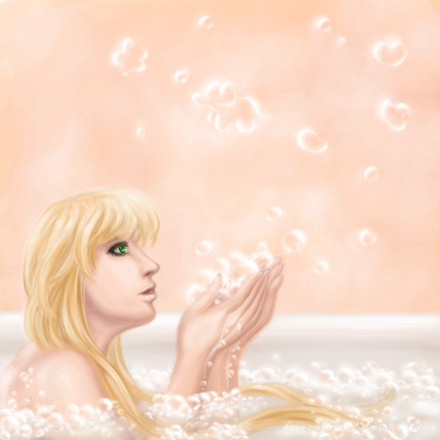 Stunning job on the bath and bubbly work of the water around her, and the overall shot or perspective of everything is done so very professionally.