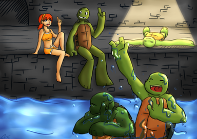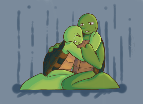 It's easy to forget that April, with her faΓ§ade of being a tough street-kid, is a relative newcomer to this 'fight in the face of death to save the world' thing. She is, basically, a sixteen-year old kid who has suddenly found herself having to learn to become a warrior and fight for the very future of all humanity. She's entitled to be scared sometimes and need to be just held by one of her brothers-by-choice until she can stop herself crying.