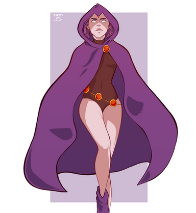 Had to take a go at Raven. I find it funny most redesigns of her still have her leotard while Starfire is usually put in a skirt.I say put her in dress and tights/leggings too!