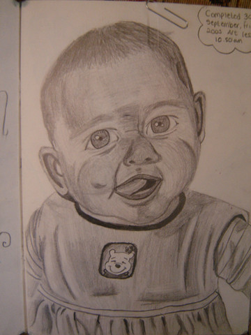 this isnt the final piece, for some reason i never took a picture of the finished one, now its framed and at my sistersdone in water colour and pencils