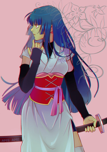 #anime #demon #fanart #higurashi #horns #kimono #miko #purplehair #sword #higurashinonakukoroni #whentheycry #hanyuufurude #furudehanyuu #higurashinonakukoronikai