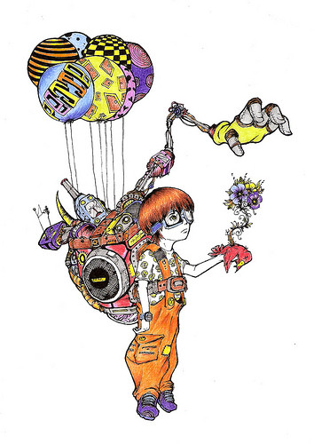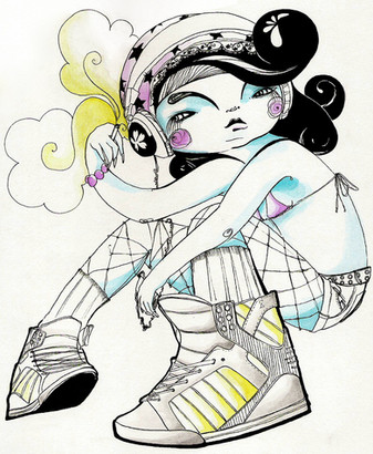 I really love this kind of art. her shoes are cool.
