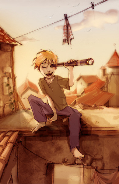 He reminds me of young Edward Elric from FMA, XD. Cute!