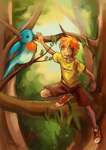 Summer is coming. Oooohh aahhhh. And Frog just loooves to climb. Oh yes he does. This started off as nothing but a boredom doodle, but I decided to finish it and was actually pretty fun. Yes, he's older in this imageI took a chance and decided not to put the watermark across the middle. Please don't make me regret it. >__<;