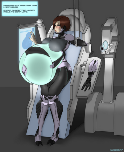 A bit of fan art for the DE game - Warframemy Tenno Celesse, Saryn prime, Kubrow, and space mom (The Lotus)