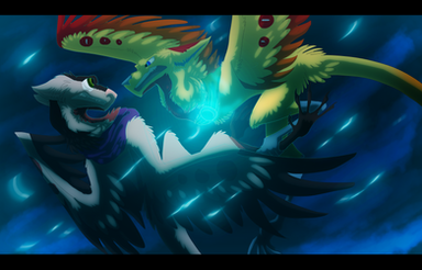 #anthro #anthropomorphic #avian #bird #commission #digitalpainting #fighting #flying #furry #magic #monster #powers #space #stars #painttoolsai