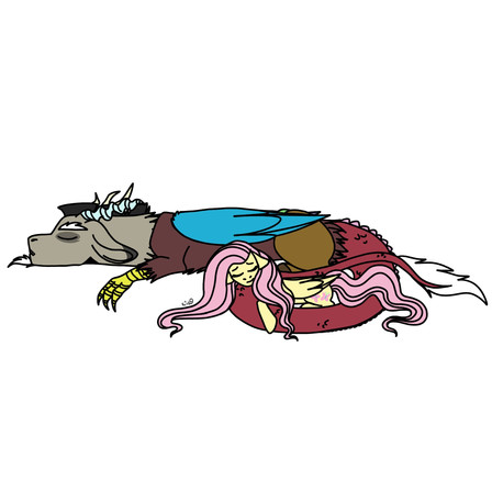 I cannot believe how quickly I became a fan of Discord. I saw his intro episode and I loved his obnoxious mischief. His attachment to Fluttershy was definitely something unexpected though. They are very cute together and your art here is no exception.