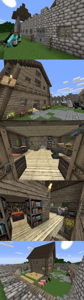 A lodge made a few weeks ago for a Survival World I'm working on and off of. Not showing the two rooms located on either side.*Steelfeathers Enchanted Texture Pack