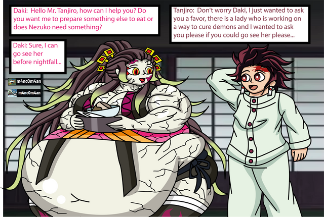 Nezuko is in training, with a little motivation. Don't worry, Melody can keep people in her gut for a couple hours. Hope you enjoy.Related content