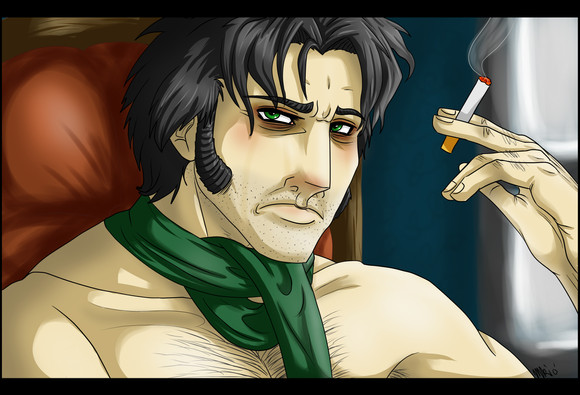 This reminds me of beauty and the beast for some reason...think it's the chair and the fire, maybe his hair to
