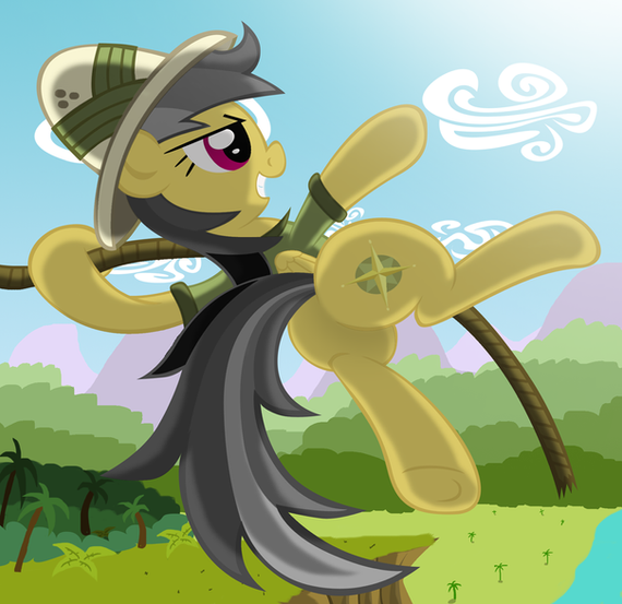 It does beg the question why Daring Do would swing on a vine when she can fly. I guess it's cooler that way.