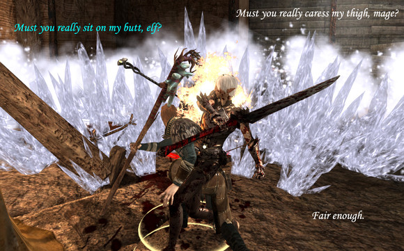 And this is just something random i did with my mother, that's shadi, getting stabbed by Jora the norn in guild wars because he had his face in her breasts.but yeah the whole magazine and stuff idea was mine, game is guild wars everything like that, guild wars and more such. <3