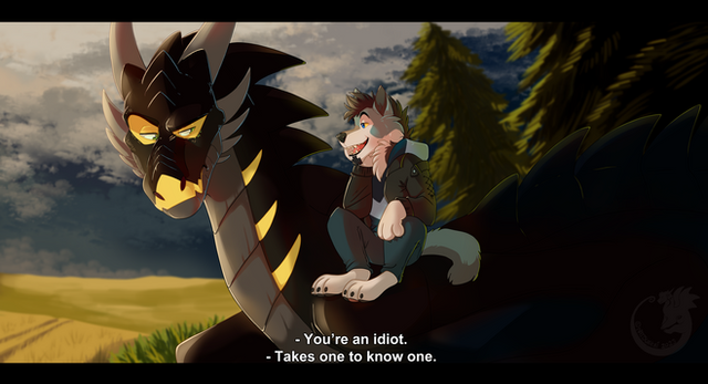 Long overdue commission for Himeli on discord, and his friend Sekr, featuring their sonas posing as Mike Stoklasa and Jay Bauman from their favorite YouTube series RedLetterMedia.