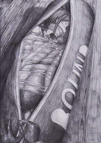 "Slaves were in fashion around the campus."Media: no. 2 pencil, Sakura Pigma Micron pens