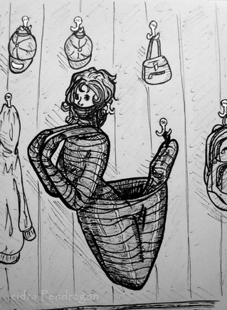 "Every night was a different party, but the guests always smacked their lips at her the same."Media: no. 2 pencil, Sakura Pigma Micron pens, Pilot G-2 mini colored gel pen
