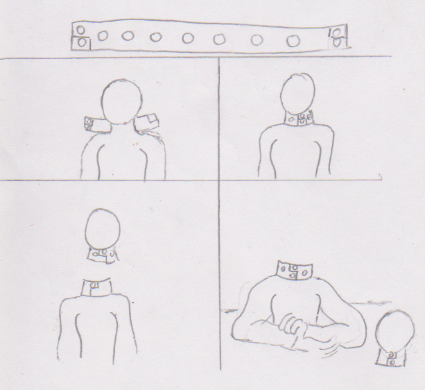 Important: Do not attempt what is shown. Health and safety come before fetish, always. I do not condone violence against, nor objectification of any person belonging to any identity."And with the last steel piece welded over her face, her posture was permanently corrected."
