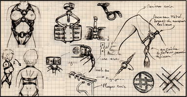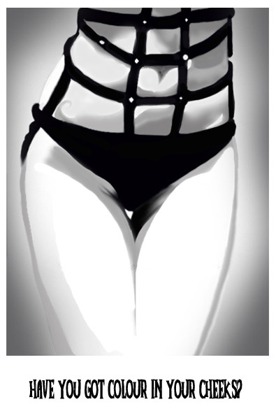 "She stared at herself in the mirror, less concerned with the undergarments she'd been locked into than she was with how on earth her husband had put them on without waking her."Media: no. 2 pencil, Sakura Pigma Micron pens
