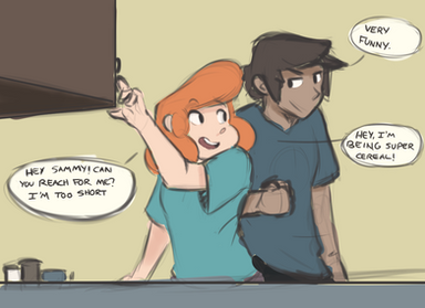 bahahaah I just imagined this strip's alternate ending: She insults his ears, he insults her height, and then they randomly make out XD