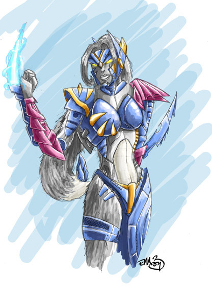 Same as with Lilac and Denki, I plan to write a more in depth story about her and Blurr. Like her sisters she is a Bio-Cybertronian and like Lilac her appearence leans more toward her Cybertronian half, unlike her sister Denki. Her main abilities are Wind, but she does possess some Fire abilites as well.