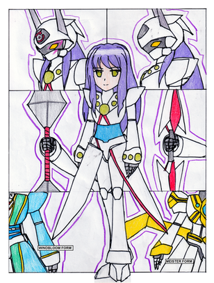 Whenever Denki or any other member of her species goes to cybertron or is in the presence of cybertronians they transform into their Cybertronian form. Over the years they developed this ability so that they could stay hidden from cybertronians without being detected. This is due to cybertronians dislike and lack of respect for organics or even a half organic organism. They may stay in their Biocybertronian form when in the presence of certain decepticons since they don't mind it as long as they are on their side. (the decepticon side)So this is Denki's cybertronian form. I drew both her Biocybertronian and her Cybertronian for to show the similarities and differences in her designs. In her Cybertronian form her orange-pink armor turns a more redish-pink. Her hair and bolts on her legs turn a blue-grey. Her daimond spikes turn into electric pulsars, or stingers if you'ld prefer. Her back armor transformers in varies ways to attack. Her Cybertronian "tail" can elongate and retract and can be used like a whip. The prongs can stretch out to absorb electricty from her surroundings that is then stored in her back armor to be used later, when needed. In her cybertronian form she goes by the name Sunshock.