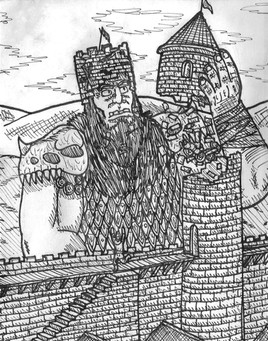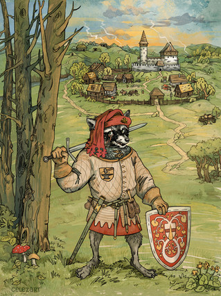 Giant halberdier from 17th century and his castle (inspired by Kreuzenstein castle). Art commission for indie game menu.Related content