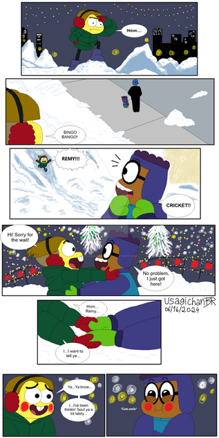 Idk what I'm doing anymore. I guess I wanted to take the "guess who likes you" meme and turn it into a comic of my own, but unfortunately I remembered that people don't read comic strips from top to bottom when they look like this, so I had to take each individual panel and rearrange them for people to read it from left to right, and what a pain it was. It kinda screwed up the alignment but I wasn't going to start all over again.I don't even care at this point if I forgot to shade something. I'm DONE with this. OOOYYY.