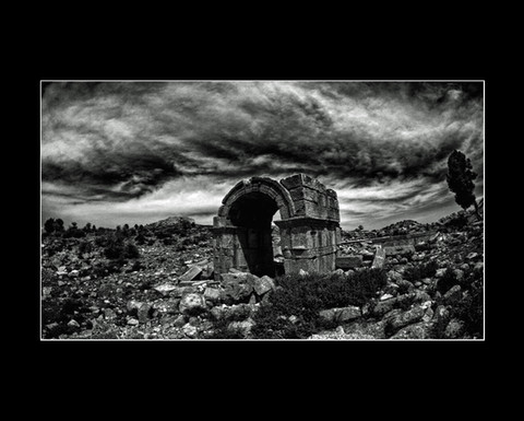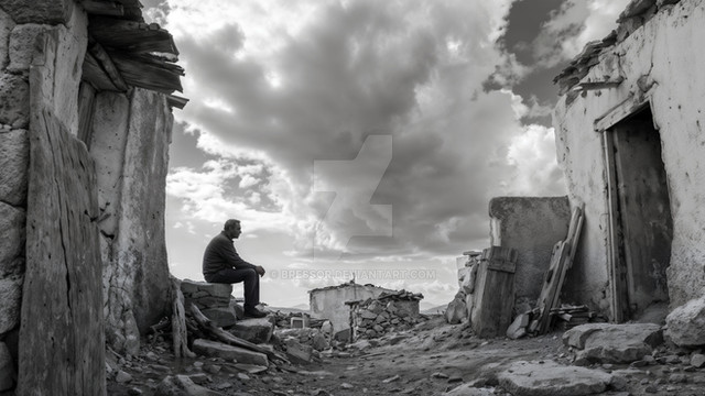 yıkıntıların kenarında "ayakta kalan tek bir insan" olması ayrı bir mânâ katmış; taşlar dayanamıyor da çağlara, insan dayanıyor bir şekilde...