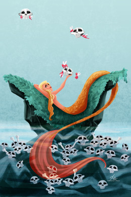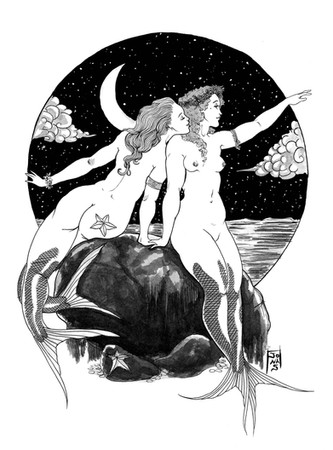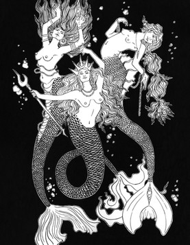 This one is based on a folklore legend of my state here on Brazil, called "Encantadas". They are mermaids that enchant the seamans/sailors to eat them aliveAnd I've made them as my characters Greta, Vivi, Olivia and Flor. And in the middle is a comic character of Fulvio Pacheco.