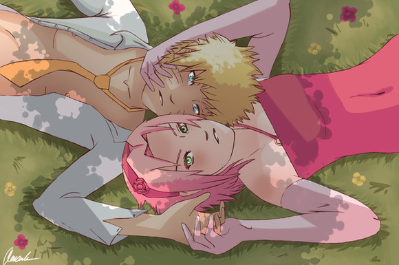 So the theme was spring and I've to say it was very inspiring thanks to the warm weather we've in France right now. So here is my favourite couple Naruto and Sakura enjoying the warm weather in a field with flowers