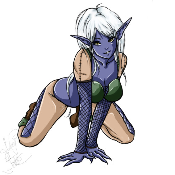 Muy pero muy bonita... me recordΓ³ a un personaje de un anime: Record of Lodoss war. El nombre es Pirotess una Dark Elf, mucho muy carismΓ‘tica y hermosa... Tu Drow... es muy tierna y un gran trabajo.